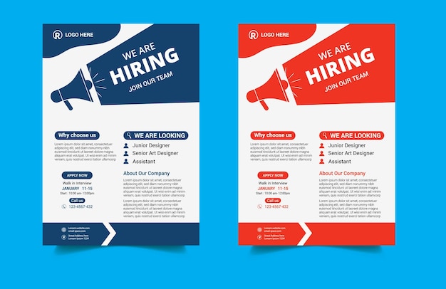 募集チラシデザイン、求人広告チラシデザインテンプレート、求人チラシポスターPremiumベクトル素材。