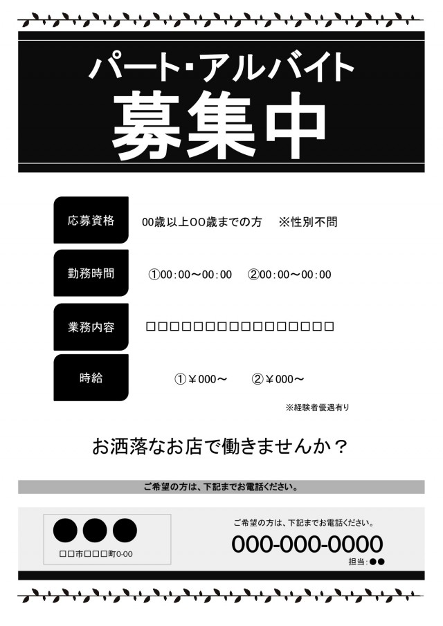 葉っぱライン入り求人広告の雛形無料の雛形・書式・テンプレート・書き方ひな形の知りたい。
