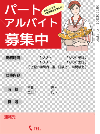 求人広告 テンプレート パン屋さんのパートアルバイト募集中のイラストのイラスト素材108305196- PIXTA。