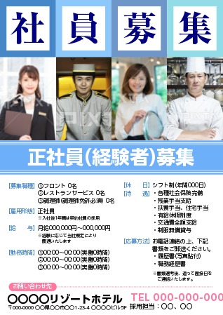ホテル_スタッフ募集_裏面チラシ・フライヤー求人の無料デザインテンプレート印刷のラクスル。