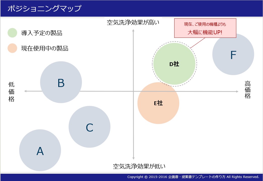 企画書・提案書テンプレートの作り方戦略設計ポジショニングマップ。