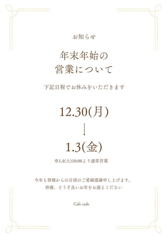 年末年始休業日のお知らせ看板製作・内装工事・店舗デザイン・チラシ制作なら 創輝社。