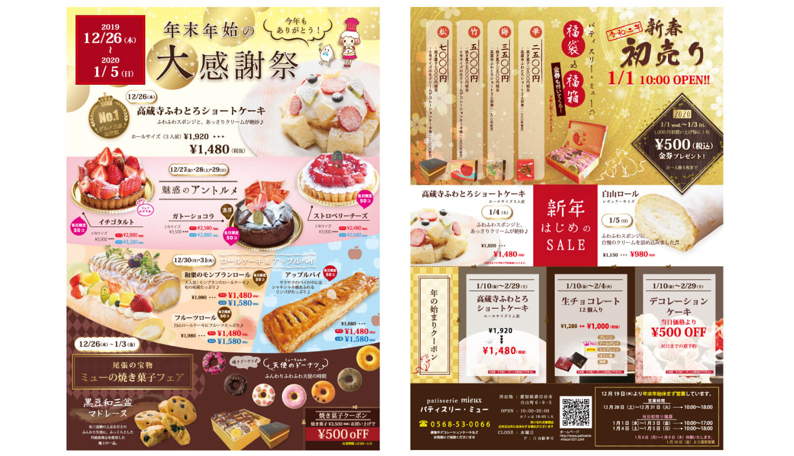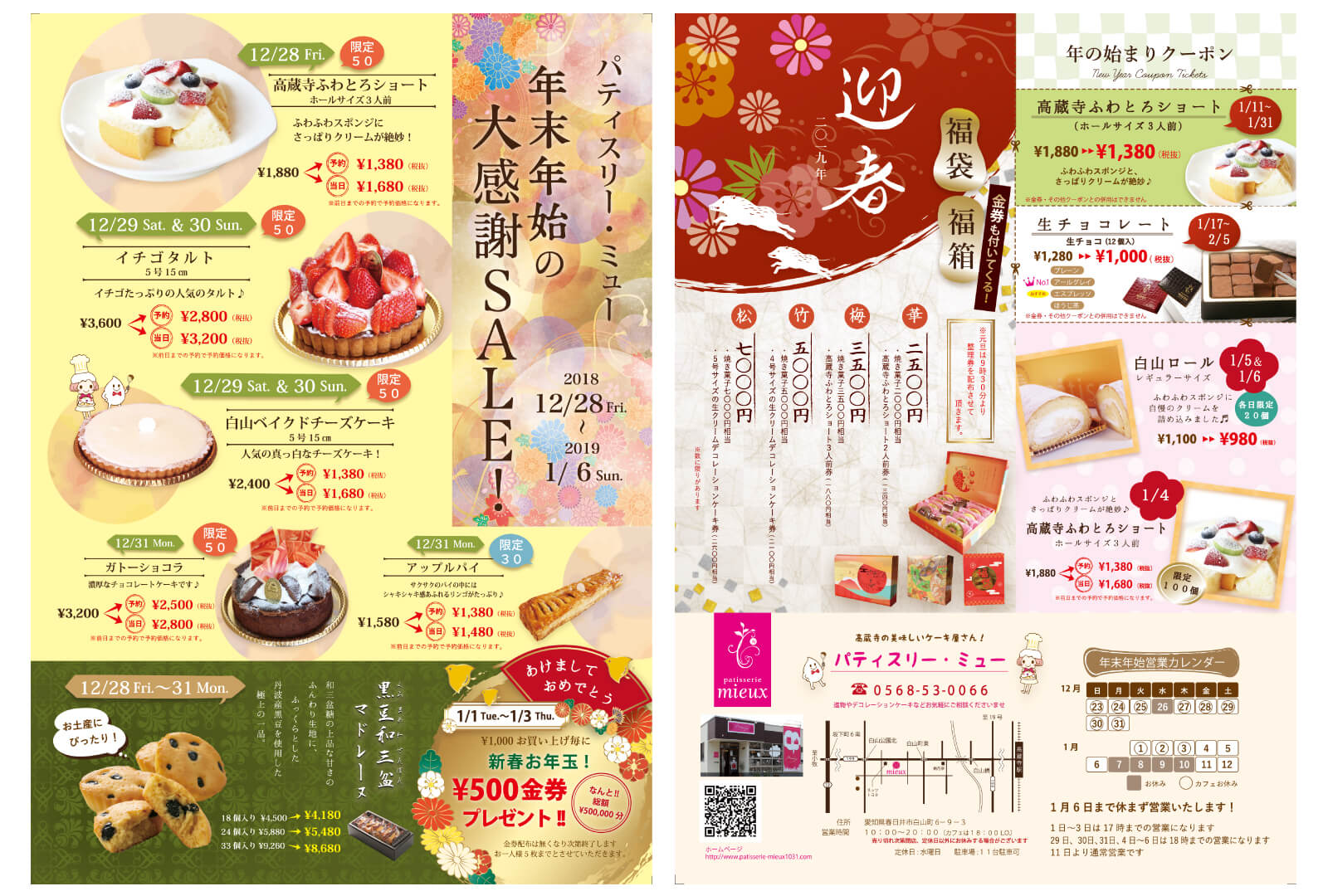 パティスリー・ミュー2018年末チラシ名古屋のホームページ制作 WEB制作会社株式会社ZoDDo。