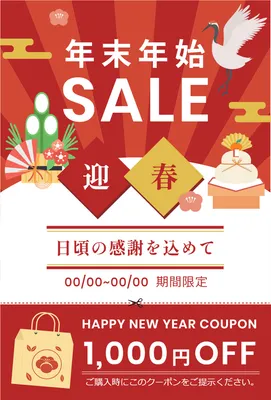 無料チラシテンプレート - 年末年始の告知向けチラシデザインASOBOAD。