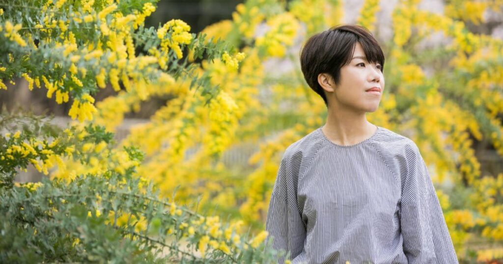 大阪府立 花の文化園でのビジネス用プロフィール写真撮影ヘアメイク。