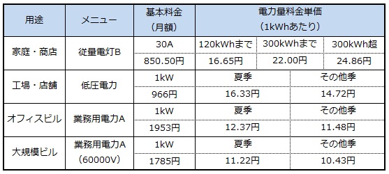 九州電力送配電 季時別電灯・時間帯別電灯・ピークシフト電灯・高負荷率型電灯。