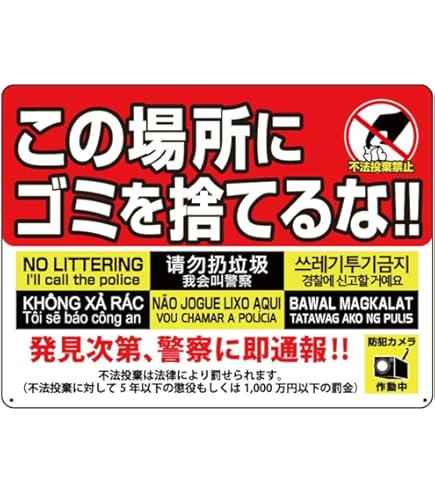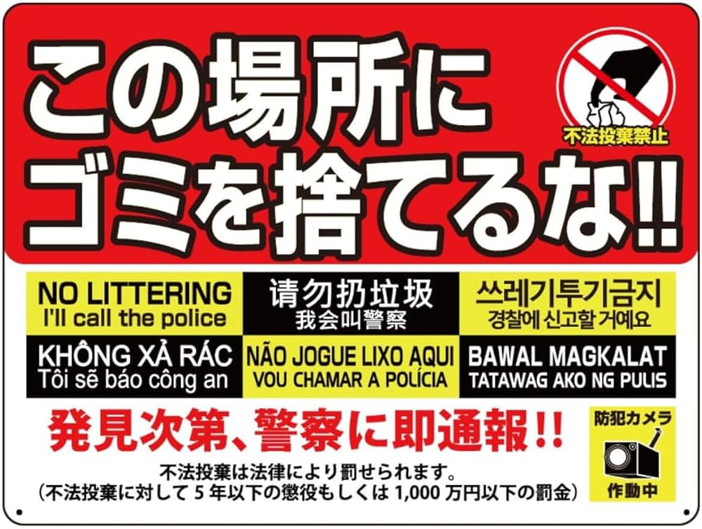 Amazon.co.jp: 看板 不法投棄禁止 6カ国語 この場所にゴミを捨てるな!プレート看板・注意看板・ぶらさげる安全標識内外両用 :産業・研究開発用品。