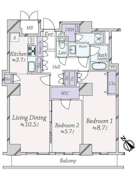 ソフィアタワー勝どき 19階 2LDK 71.24m2 5474-1903恵比寿不動産。