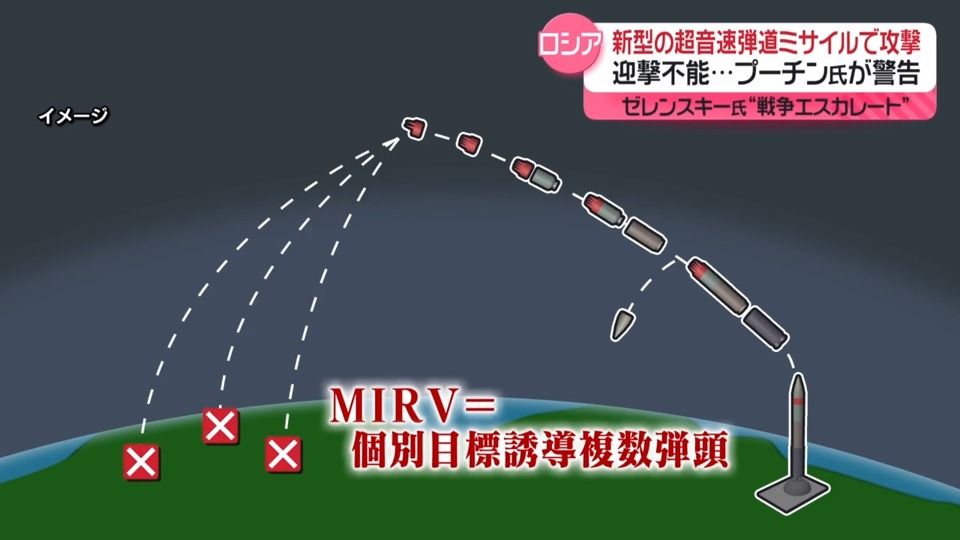 迎撃不能 プーチン氏が警告 “音速の10倍”新型の中距離弾道ミサイルでウクライナを攻撃 2024年11月22日掲載 日テレNEWS NNN。