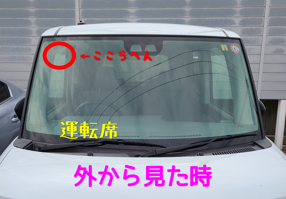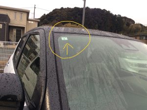 車検ステッカーの貼り付け位置、運転席側へ フロントガラスの右上に移動ツギノジダイ。