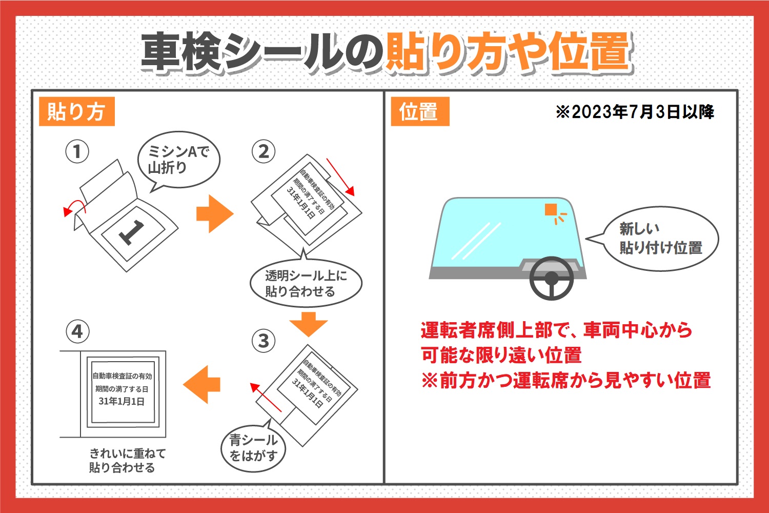 車検ステッカー 令和5年7月より、貼り付け位置が変更となります! - 伊勢崎つなとり店。