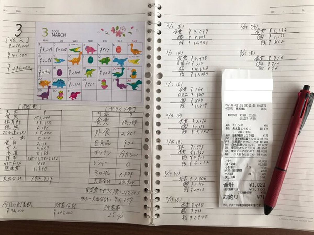 家計管理#1 手書きの家計簿つけていますこびとの生活。