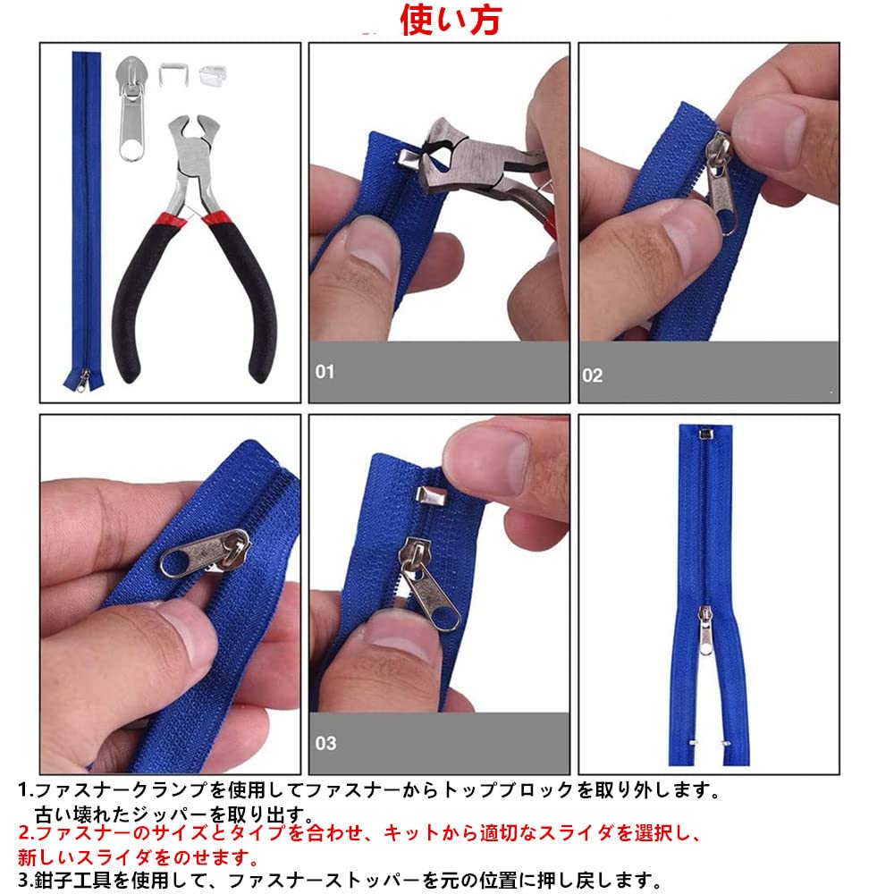 Amazonサムコス ジッパー ファスナー 修理キット 修理用ペンチ付き 縫製 交換用 diy ジッパー ファスナー引っ張り多機能ジッパーヘッド 財布裁縫 手作り 服装 手芸バッグ ジャケット テント 荷物 寝袋 修理屋さんに適用約85pcsファスナー 通販。