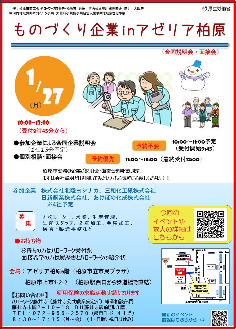 ものづくり企業inアゼリア柏原 合同説明会&面接会大阪府柏原市。