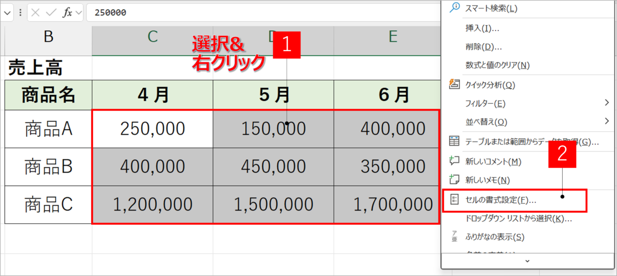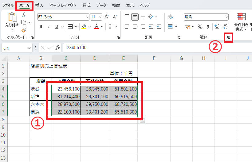 Excelで金額を千円単位、百万円単位、万単位で表示する方法 図解 @DIME アットダイム。