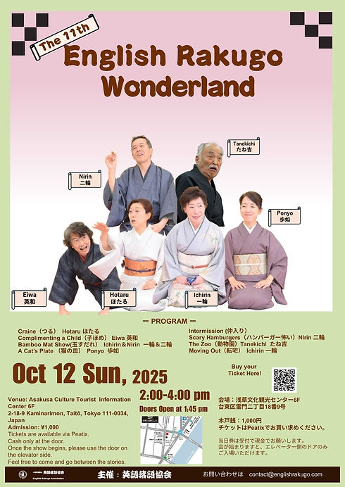 英語落語公演・ワークショップはこちら英語落語協会English Rakugo Association。