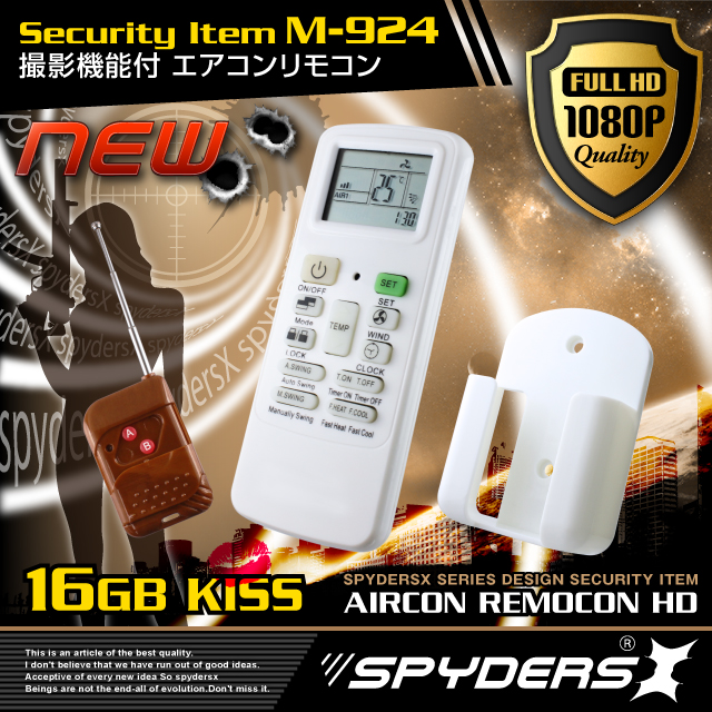 エアコンリモコン型カメラ 小型カメラ スパイダーズXM-924 スパイカメラ フルハイビジョン 16GB内蔵mobile。