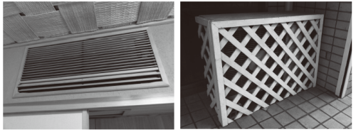 エアコン用の目隠しルーバー扉の製作事例 愛知県 岡崎市名古屋のオーダー家具とインテリアコーディネートなら LUFT 愛知県。