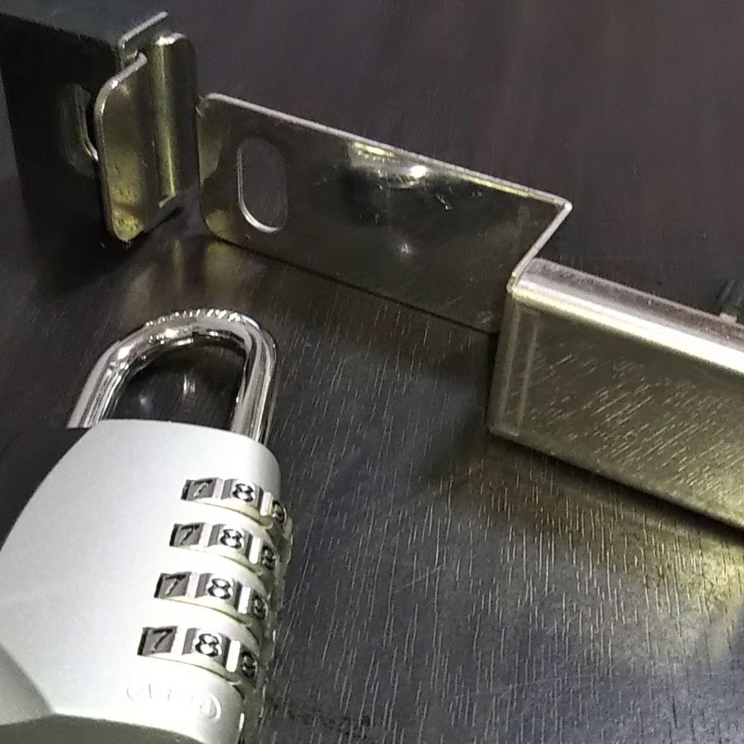 ドアジョイナー 扉用仮締め金具 南京錠使用。