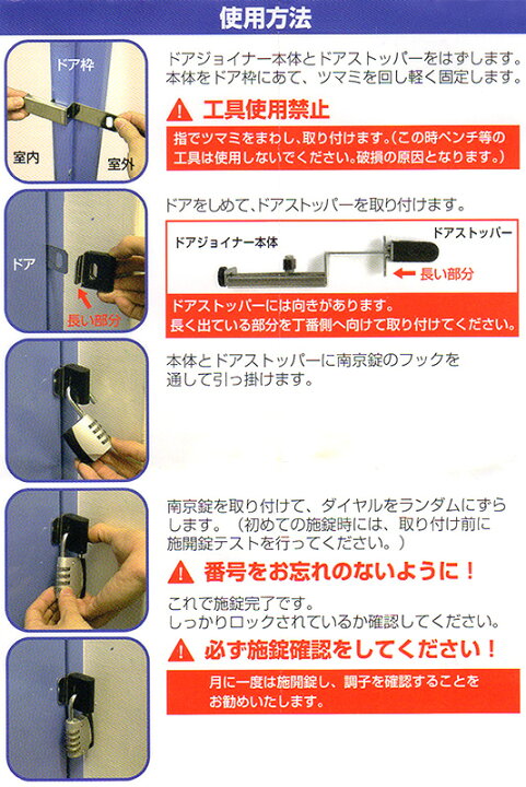 NLSドアジョイナー取付方法 穴を開けずに簡単補助錠 賃貸・アパート 不動産業者様にも 鍵交換のことなら The・Kagi堂 楽天市場。
