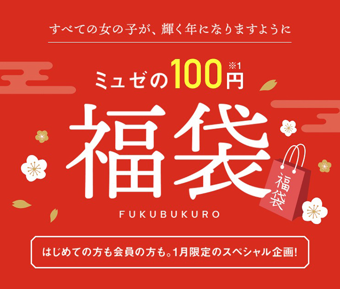 ミュゼの1月キャンペーンは全身脱毛4回+スキンケア脱毛4回もできる100円福袋!さらに今だけ 20,000円分のポイントもプレゼント 1月31日 金 まで。