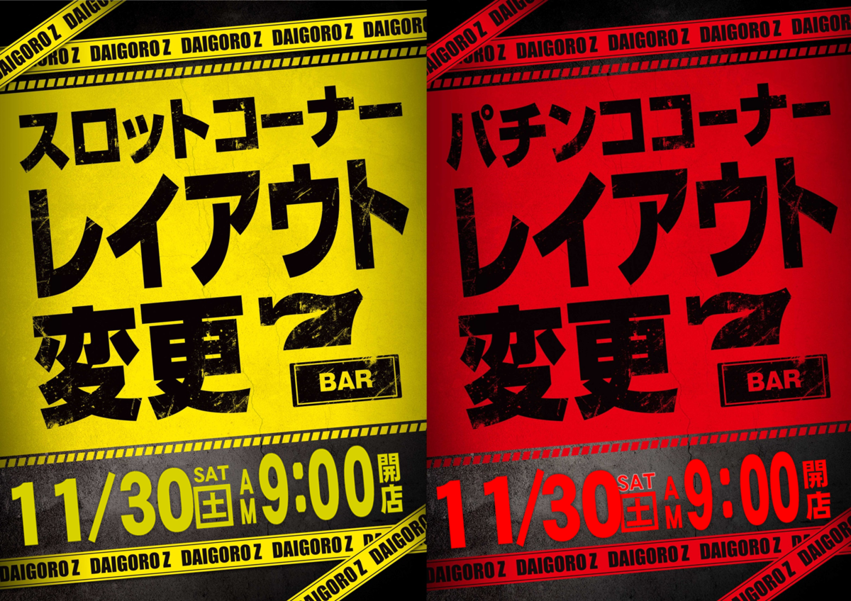 11月30日 土 パチンコ&スロットレイアウト変更!! - ダイゴロウZ厚別店情報発信。