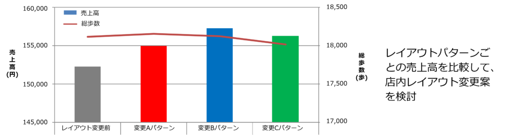 顧客購買行動分析に基づく店内レイアウト変更に伴う売上の向上 - 人流・交通流コンサルティング。