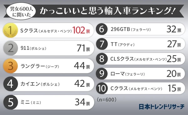 かっこいいと思う輸入車」ランキング 男性1位は「ポルシェ」、女性の1位は ?「外車の中でも有名」「いかにも高級そう」 ライフ 社会総合 デイリースポーツonline。
