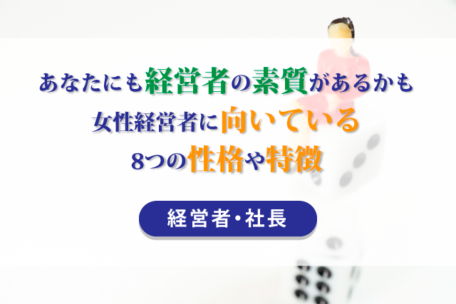 あなたにも経営者の素質があるかも。 女性経営者に向いている8つの性格や特徴 – サポートビズ総研。