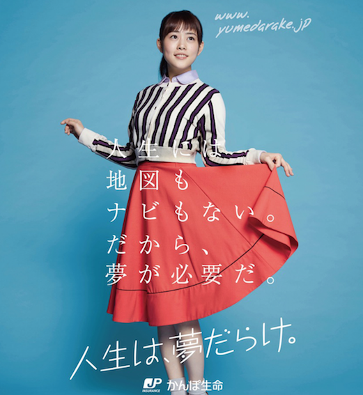 能年玲奈出演 かんぽ生命「人生は、夢だらけ。」キャンペーンのコピ。