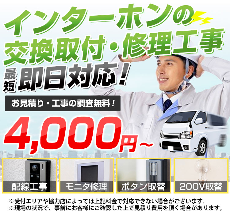 インターホン交換取付け・修理4,000円~電気工事の親方。