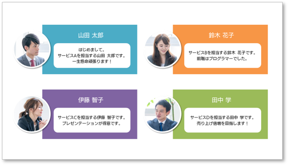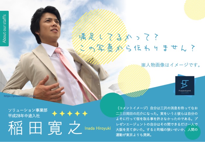 パワーポイントデザイン例 社員紹介のテンプレートデザイン。