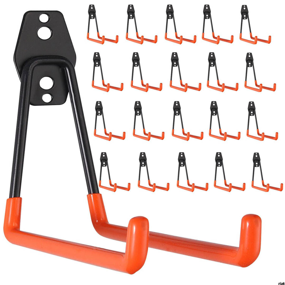 高耐荷重のガレージ収納フック20個セット 壁掛け収納 ダブルフック ガーデン用品。