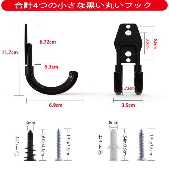 ホース 収納 フック ガレージフック ツールフック 工具壁掛け 収納 ガレージ 農具 自転車 ガーデン コンクリート壁フック 水やりホース 散水ホース水道ホース 洗車 庭ブラック 穴2つブラック 穴2つ- メルカリ。