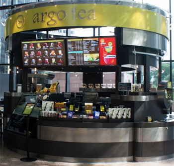 カフェチェーン店のデジタルメニュー表示 Argo Tea アメリカジャパンマテリアル。