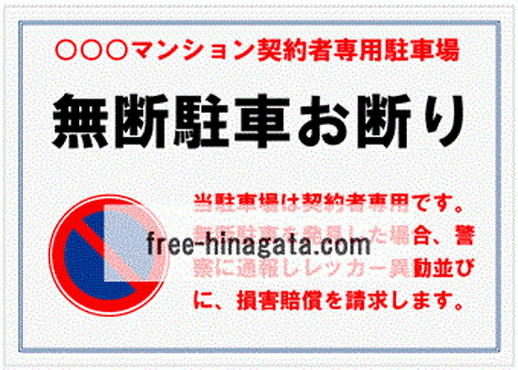 無断駐車お断りの張り紙駐車禁止の標識のイラスト入り・無料ダウンロード - フリー雛形。