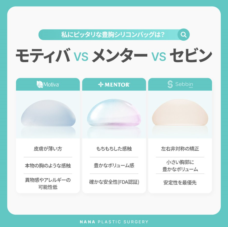 公式 韓国NANA美容外科&美容皮膚科 11月1~2日東京現地相談会開催✨on X: "韓国豊胸NANA美容外科どのシリコンバッグを選べばいいの?♦️豊胸シリコンバッグの種類を決めかねている方 ♦️自分の体型や皮膚タイプなどに合うシリコンバッグを知りたい方。