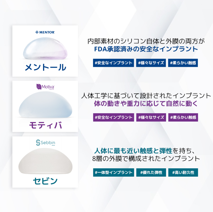 メンター、モティバ、セビン」メーカー別!胸の保形物 シリコンインプラント の特徴インクライン美容外科。