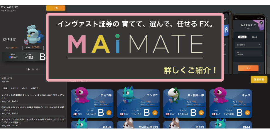 AI自動売買『マイメイト』メディアでも評判のインヴァスト証券の秘密兵器FXによろしく。
