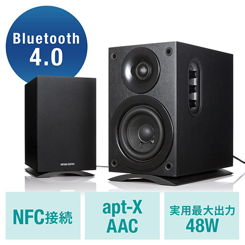 Bluetooth4.0スピーカー 高音質・低遅延・apt-X AAC対応・NFC対応・木製・iPhone・スマホ対応・48WEZ4-SP050BK激安通販のイーサプライ。