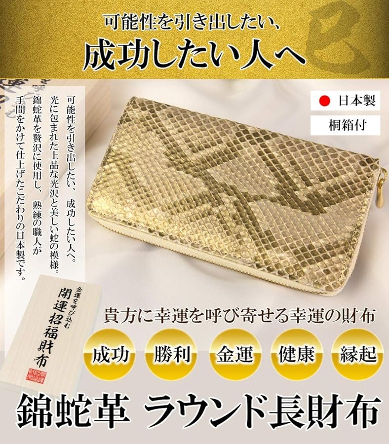 SakuraZen 金運財布 黄金蛇 パイソン レザー エキゾチック レザーを使用した錦蛇 蛇革。