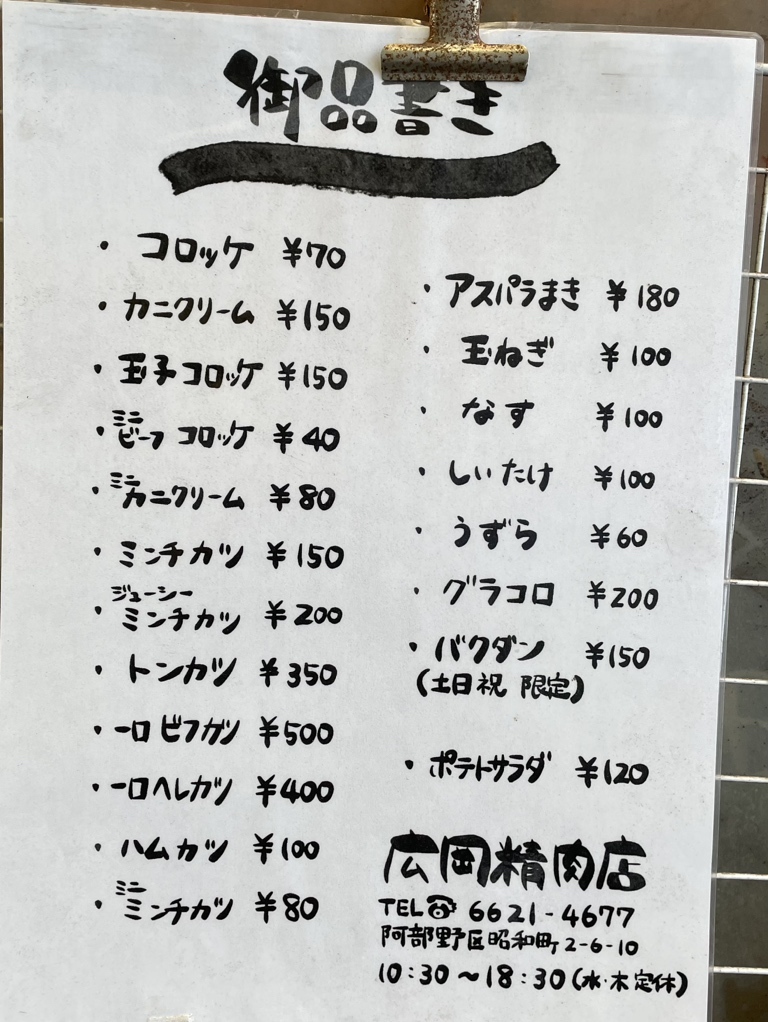 文の里商店街 広岡精肉店 コロッケ 90円 、玉子コロッケ 230円- 藤本GJのグルメブログ。
