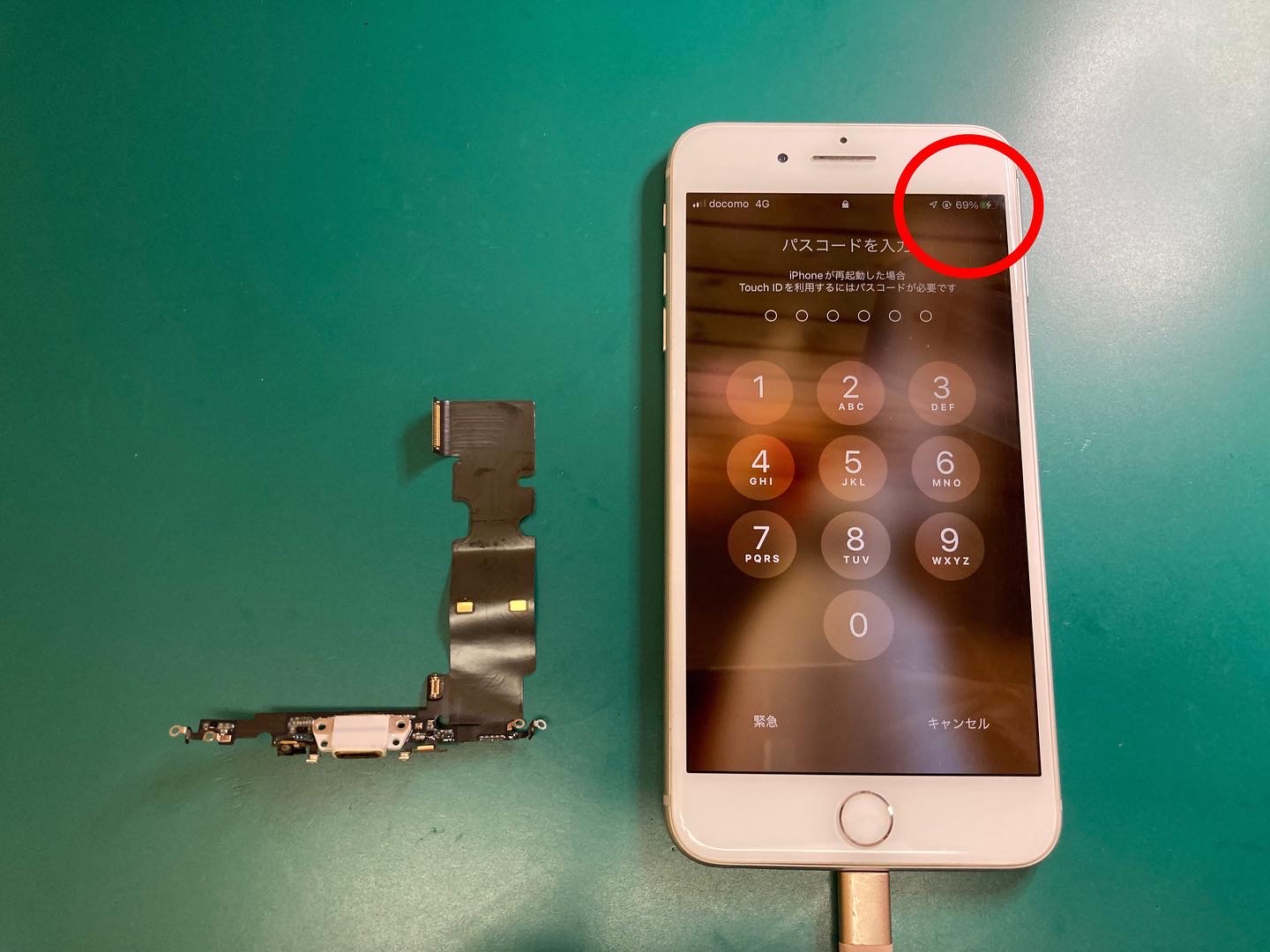 充電ケーブルを差し込んでも充電できない症状iPhone充電コネクター交換作業時間90分〜即日修理いたします。アイフォン・ライフ。
