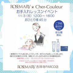 シェルクルール 1月27・30日お肌の学校開催♪ローズマリー・ショップニュース吉祥寺PARCO-パルコ。