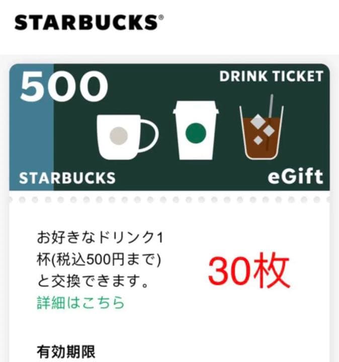 500円×30枚 スターバックス ギフトカード デジタルギフト スタバギフト チケット QR。