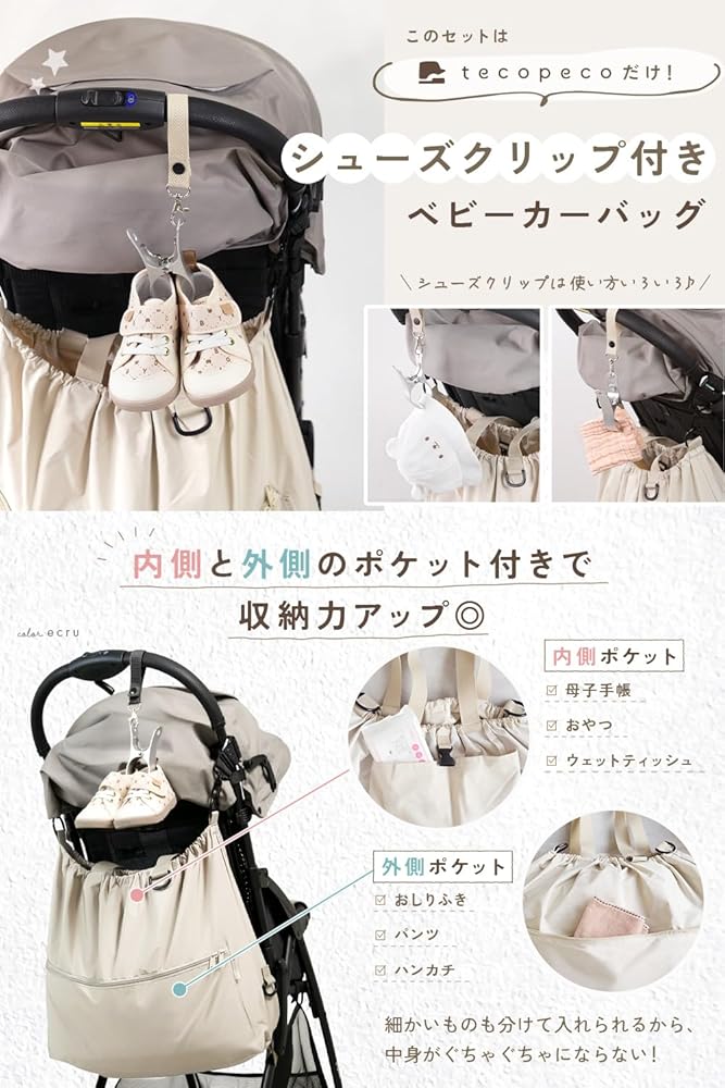 Amazon.co.jp:tecopeco倒れにくい!大容量 シューズクリップ付 軽量ベビーカー バッグ 大容量 倒れない 撥水 防水ポケット マザーズバッグ ショルダーバッグ ワンタッチ着脱エクリュ: ベビー&マタニティ。
