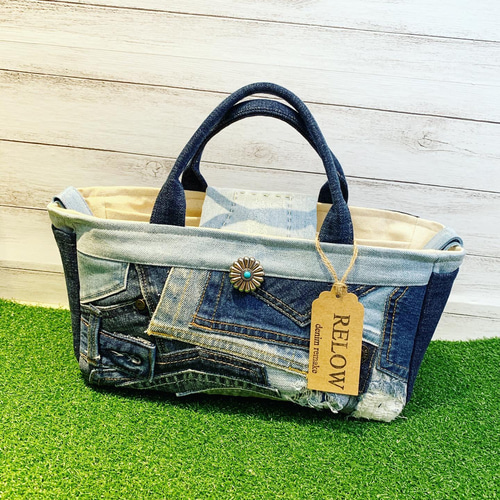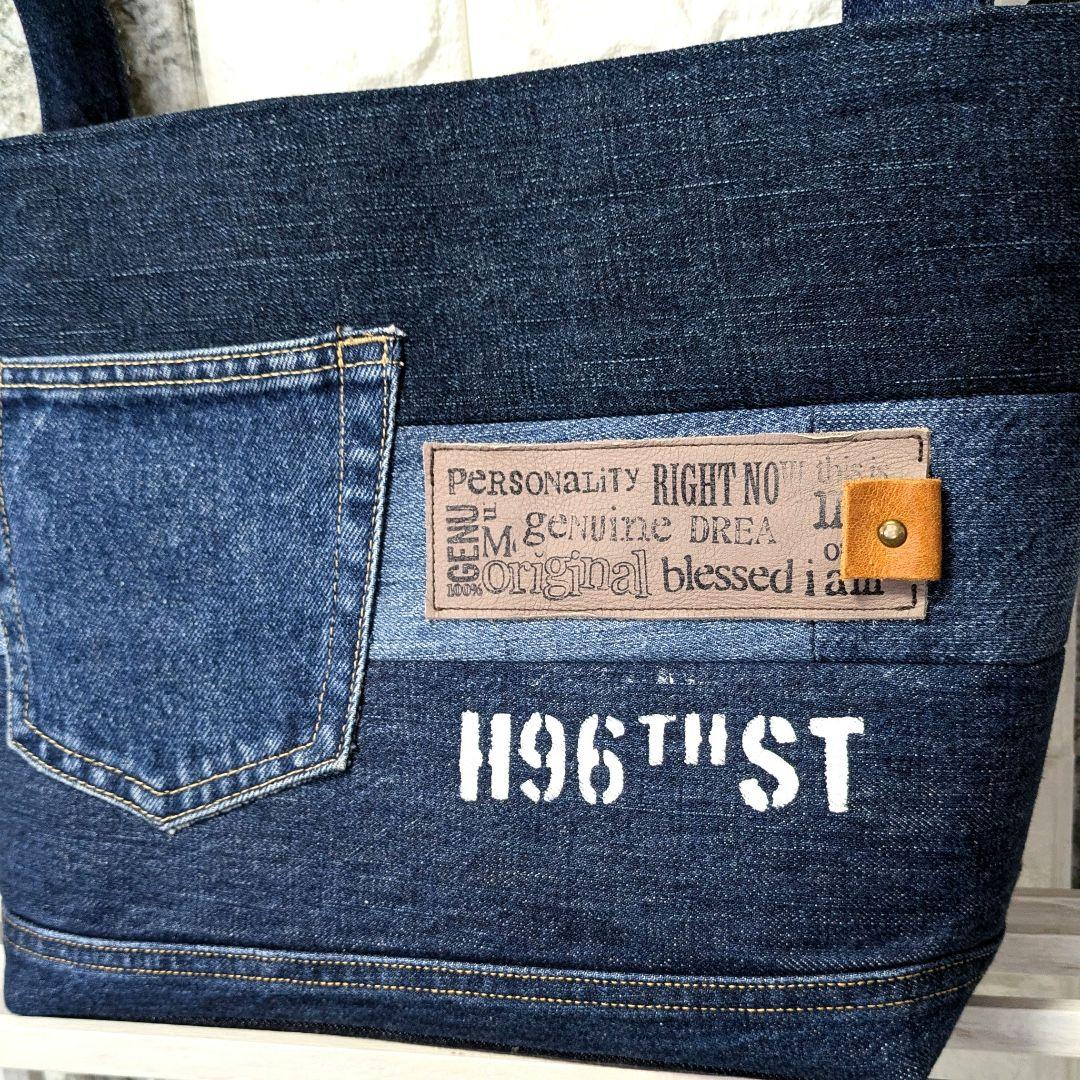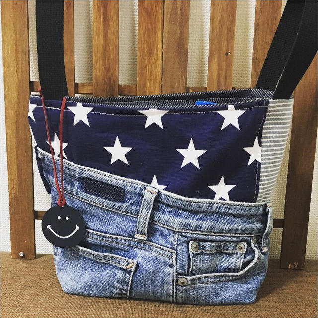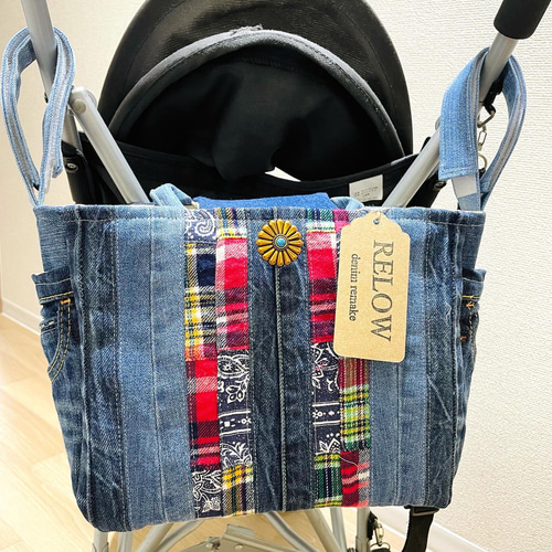 サイドポケット付きランダムデニムのベビーカー用トートバッグ トートバッグ ゆか 通販 8949498Creema クリーマ。