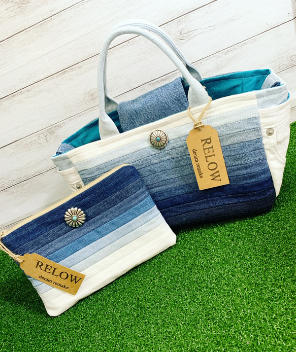 サイドポケット付きデニムグラデーションのベビーカー用トートバッグ トートバッグ ゆか 通販 9989038Creema クリーマ。