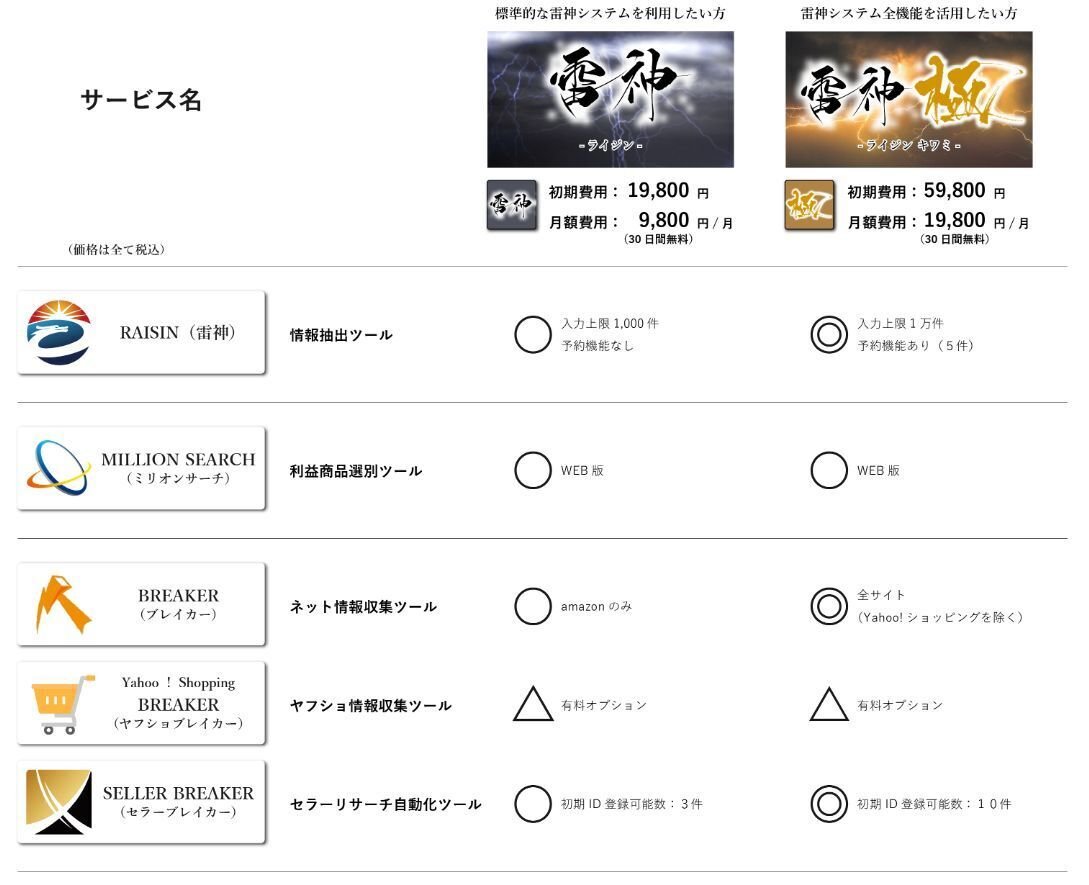 電脳せどりリサーチツール 雷神の全3プランを徹底的に比較してみた あなたに合ったプランを提案しますひこーるのAmazon輸入物販ブログ。