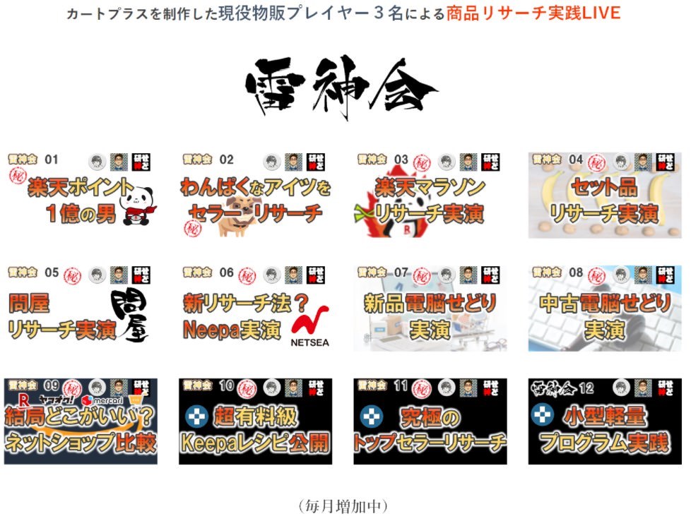 電脳せどりリサーチツール雷神毎月末土曜日に開催している雷神会のアーカイブが見れるのは雷神だけちゃんやま。